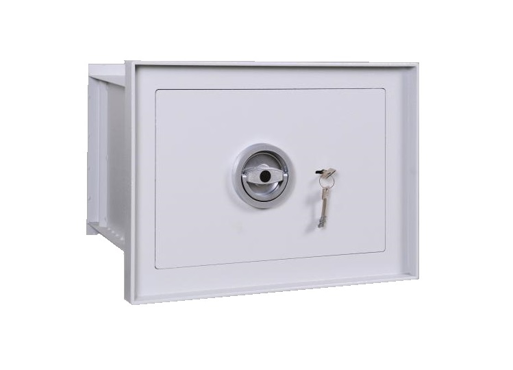 • Dvouplášťový stěnový trezor certifikovaný v I. bezpečnostní třídě s tloušťkou přední části dveří 8 mm (ocel).