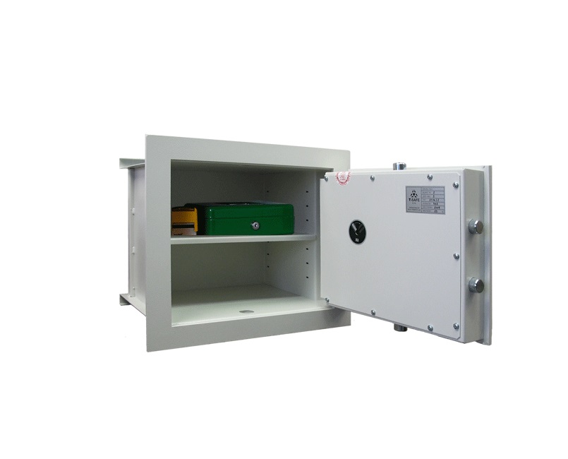 • Dvouplášťový stěnový trezor s ohnivzdorným lemem odolným proti slabému požáru (ohnivzdornost není certifikována).