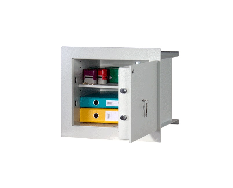 • Dvouplášťový stěnový trezor s ohnivzdorným lemem odolným proti slabému požáru (ohnivzdornost není certifikována).