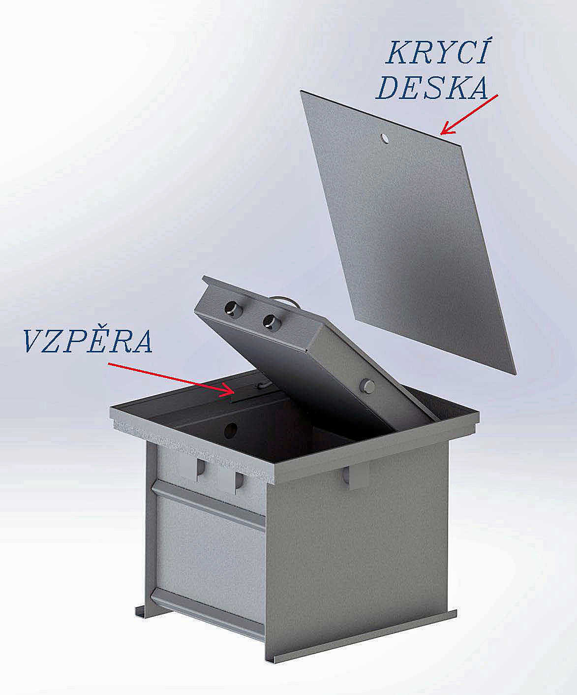 • Na objednávku jako trezor do podlahy s madlem a zabezpečením proti pádu dveří (nutno přičíst 35 - 40 mm k vnějším rozměrům na rámek a pochozí desku).