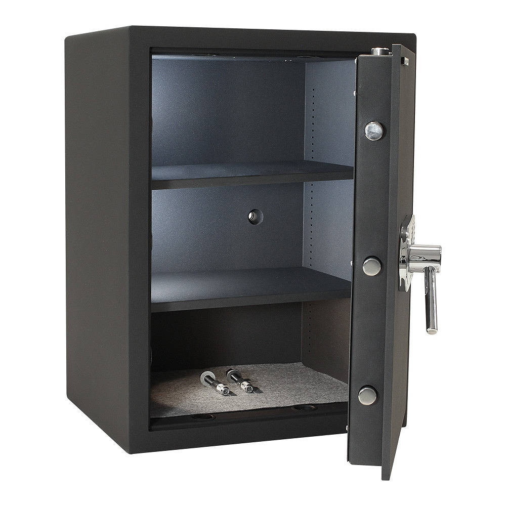 • Dvouplášťový nábytkový trezor s tloušťkou dveří 12 mm je odolný proti vloupání a menšímu ohni.