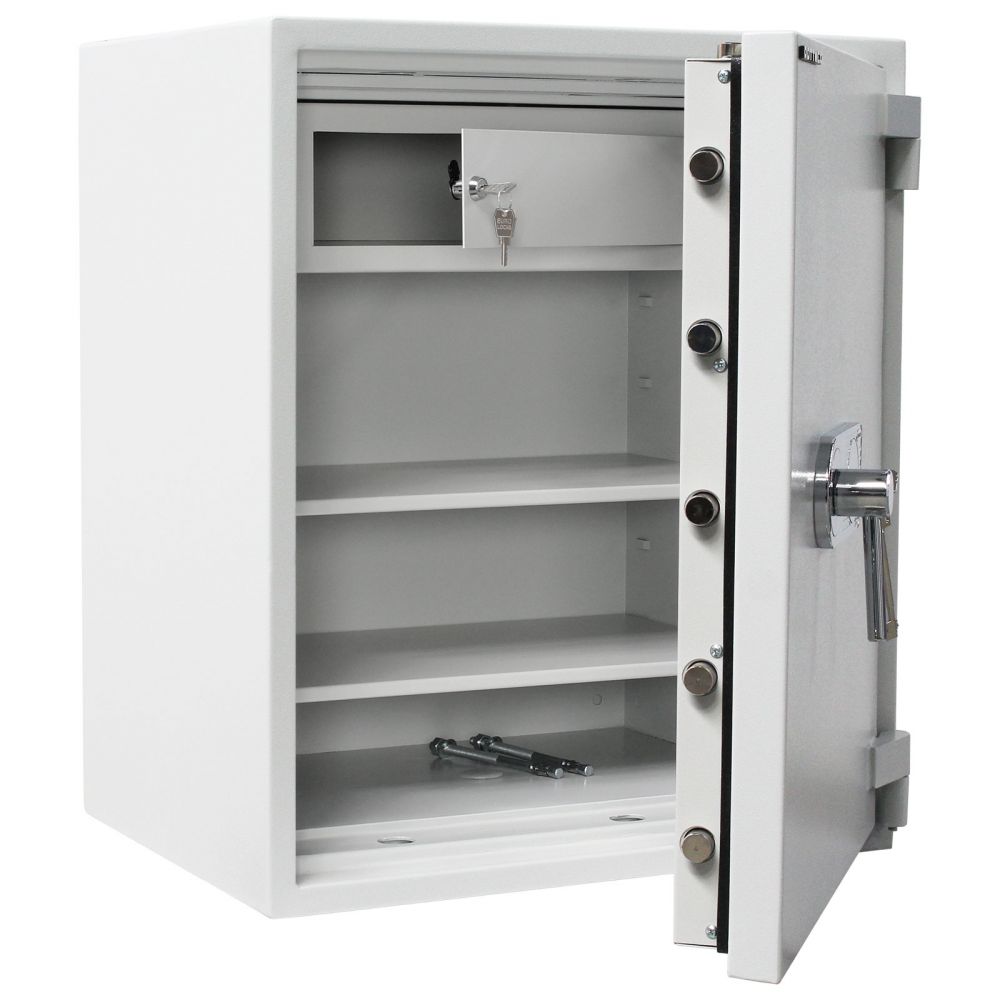 • Trezor je sériově dodáván s dvěma klíči a speciálním bezpečnostním trezorovým zámkem třídy A, který je chráněn proti odvrtání.