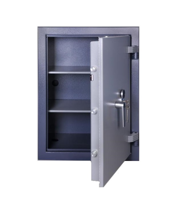 • Dvouplášťový skříňový trezor certifikovaný v I. bezpečnostní třídě s tloušťkou přední části dveří 8 mm (ocel).