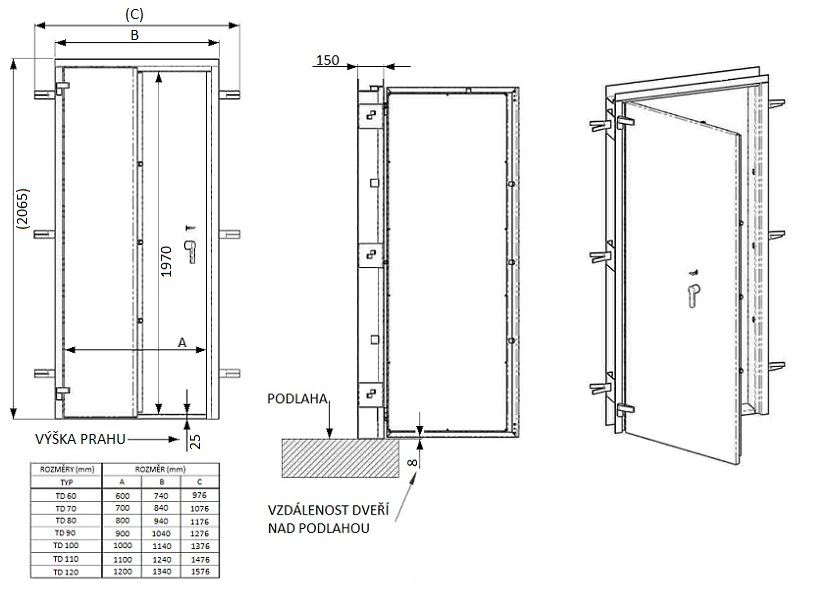 • Součástí jsou i zárubně v provedení k zazdění (za příplatek k ukotvení ocelovými šrouby).