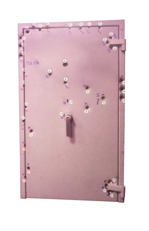 • Trezorové dveře lze vyrobit v provedení splňující požadavky ČSN EN 1522 a ČSN EN 1523 pro zařazení do třídy balistické odolnosti FB4.