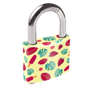 • Ocelový visací zámek s barevným potiskem vhodný pro uzamčení skříněk ve školách nebo ve sportovních areálech.