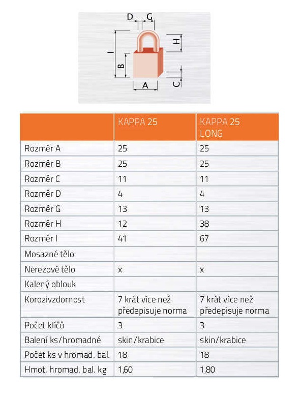 • Nerezový visací zámek s vysokou korozní odolností vhodný pro venkovní použití.