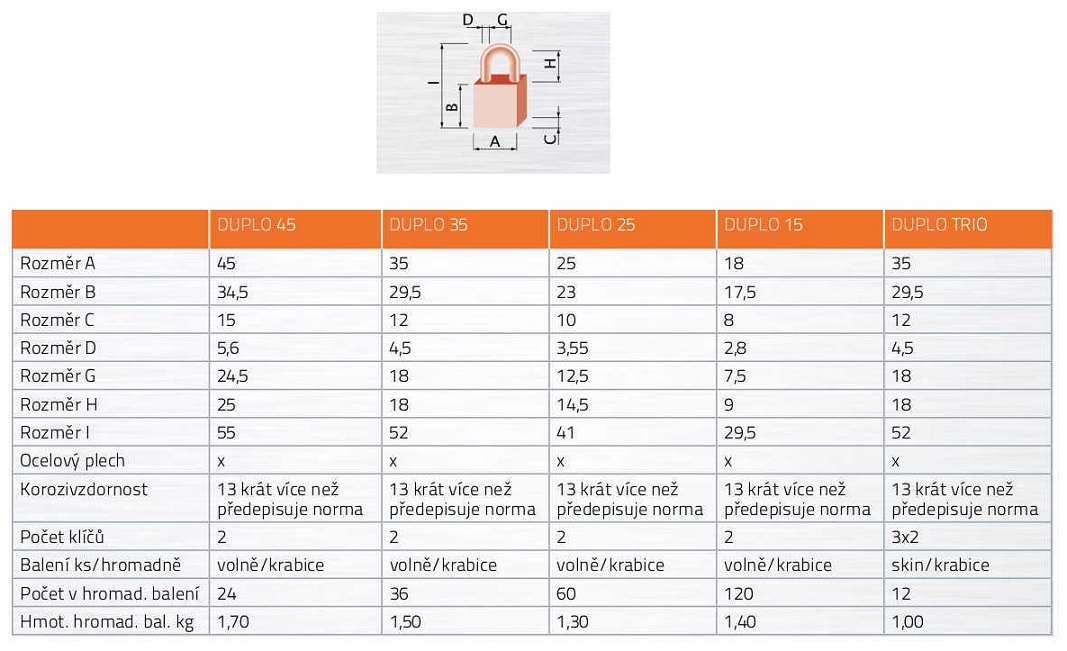 • Tradiční zámek s vysokou odolností proti korozi.