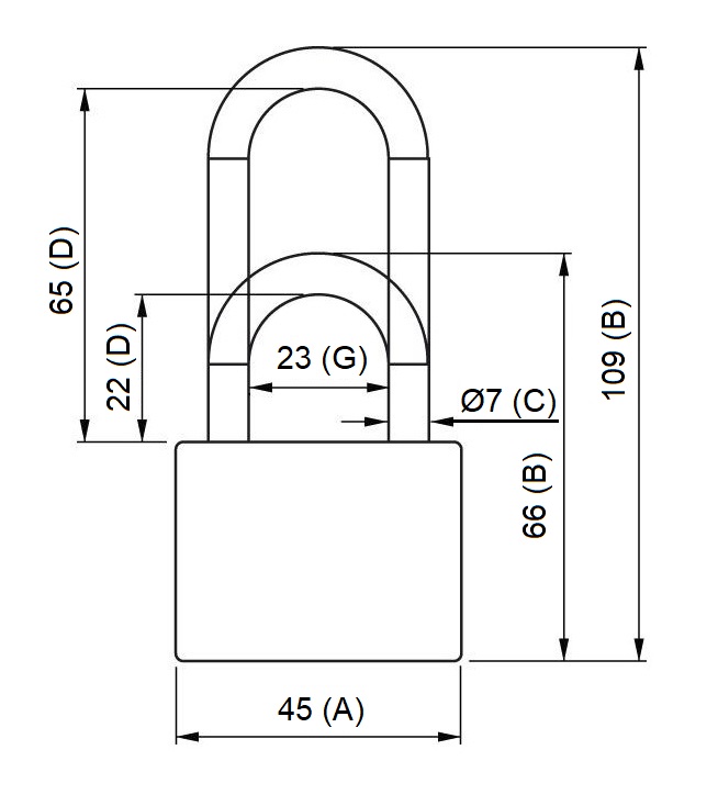 • Uzamykaní (bez klíče) se provádí zatlačením třmenu HARDENED (jištěného ve dvou bodech) do těla zámku.