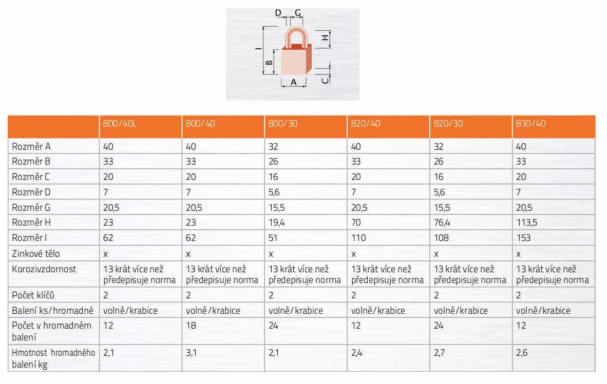 • Zinkový visací zámek s motýlkovým mechanismem vložky vhodný i do exteriérů.