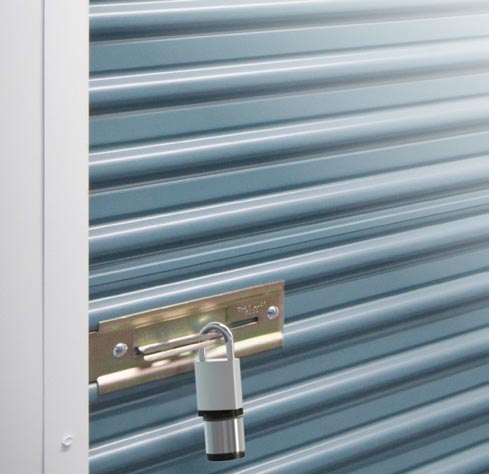 Zabezpečení úschoven - západka a visací zámek zamykají dveře úschoven nebo sklepů.