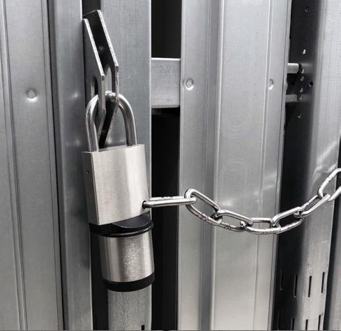 Upevnění řetězy - také u řetězů najde visací zámek plné uplatnění. Při použití bezpečném proti krádeži jej nelze odstranit ani nedopatřením.
