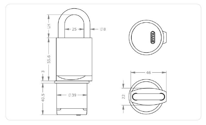 IP65 - díky třídě ochrany IP65 lze visací zámek používat jak ve vnitřních, tak i venkovních oblastech a je rovněž chráněn proti proudu tekoucí vody a prachu.