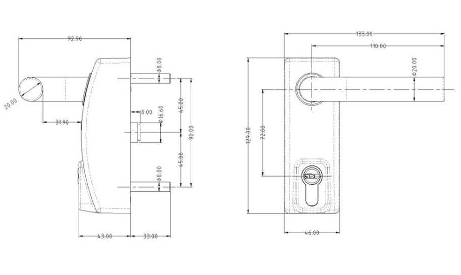 • A220 klika s otvorem pro cylindrickou vložku