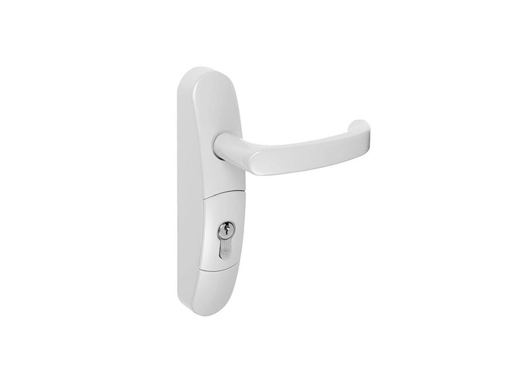 • volitelná funkce "captive key" (vždy zamčeno) - dveře se po odemknutí otevřou stiskem kliky, klíč zůstává v cylindrické vložce. Klíč lze vyjmout pouze po zamknutí (platí pro všechny štíty s cylindrickou vložkou)
