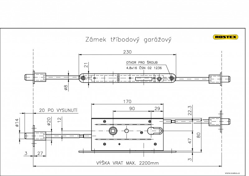 Zámek lze osadit bezpečnostním kováním Rostex 807G