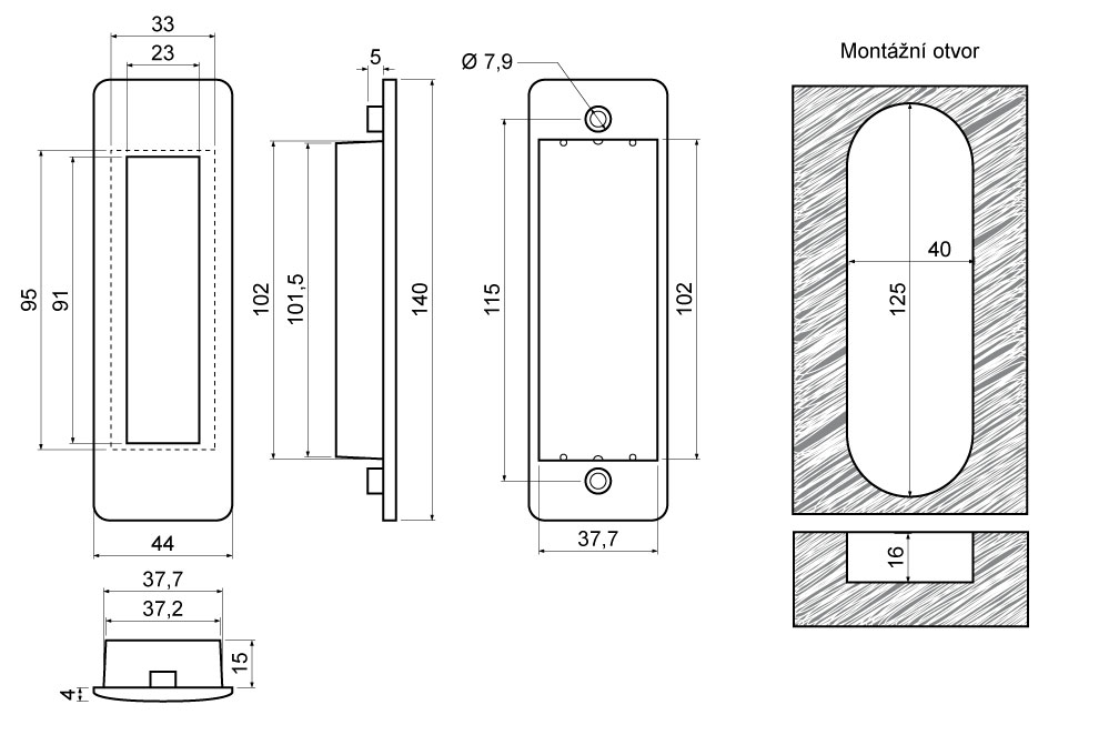 • Rozměry š/v/h: 44 x 140 x 19 mm