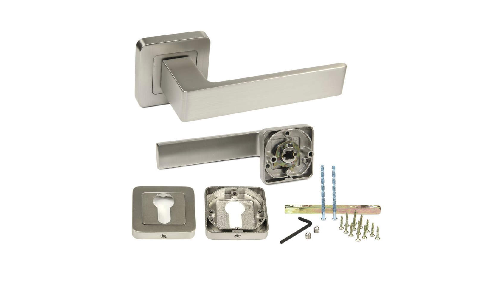 • Dveřní rozetové kování v povrchové úpravě matný broušený nikl (NIMAT).