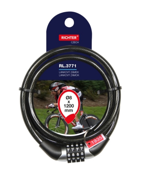 Zámek je opatřen přednastaveným kódem - viz červený štítek.