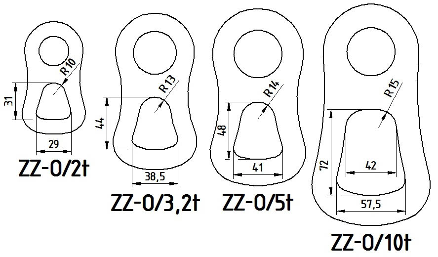 V provedení s okem se vyrábí nosnost 2 t; 3,2 t; 5 t a 10 t.
