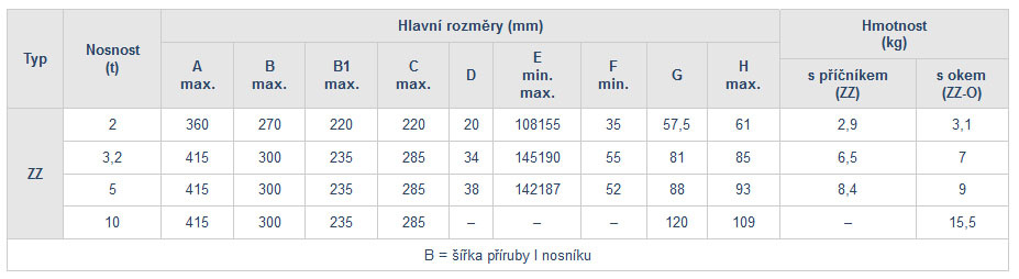 V provedení s příčníkem se vyrábí nosnost 2 t; 3,2 t a 5 t.